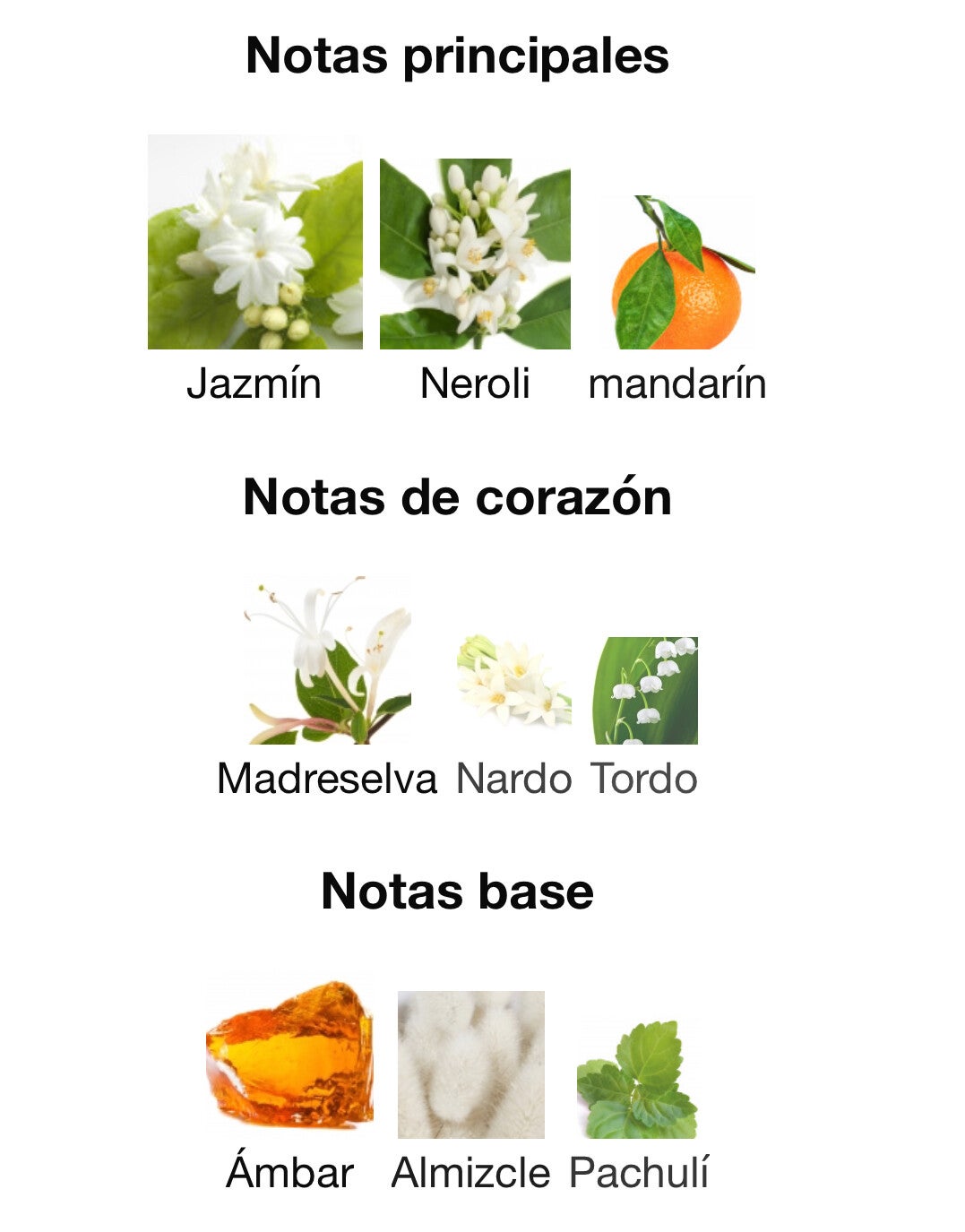 Almizcle: suaviza la fragancia y añade sensualidad.
