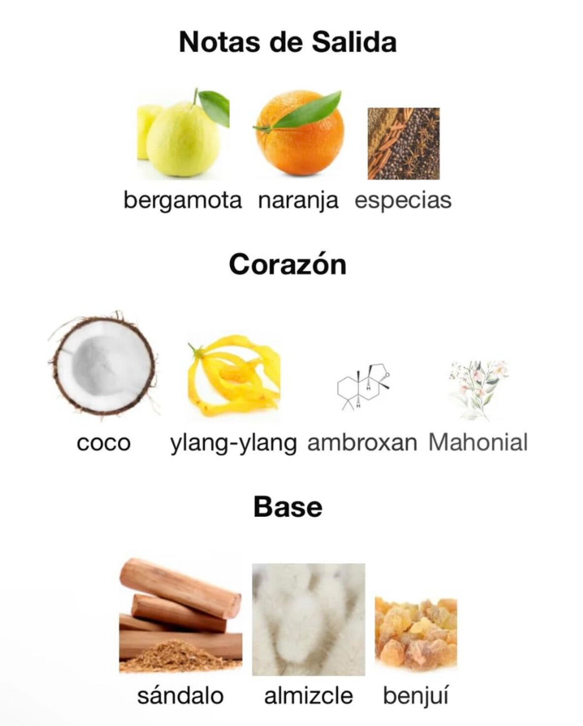 - Sándalo: cálido, suave y refinado